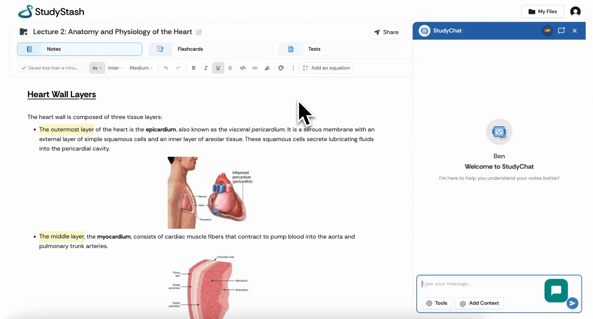 Convert your course materials into personalised study tools, like flashcards and practice tests, with 24/7 support from our AI study tutor, StudyChat.